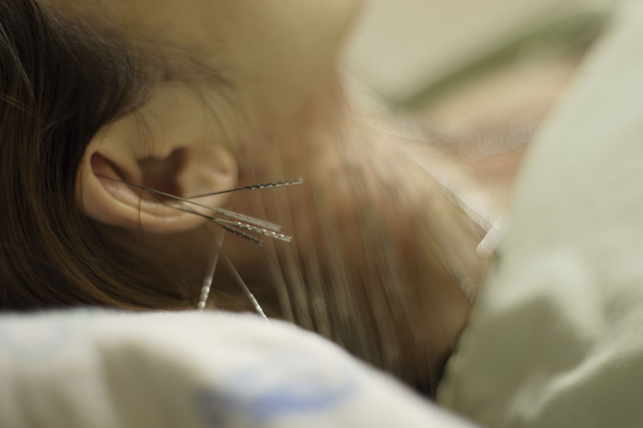 体内を流れるエネルギーが特に滞るポイント(コリ)を触診で見極めます。ポイントの一つひとつに、鍼を浅く刺してエネルギーの巡りを促します。